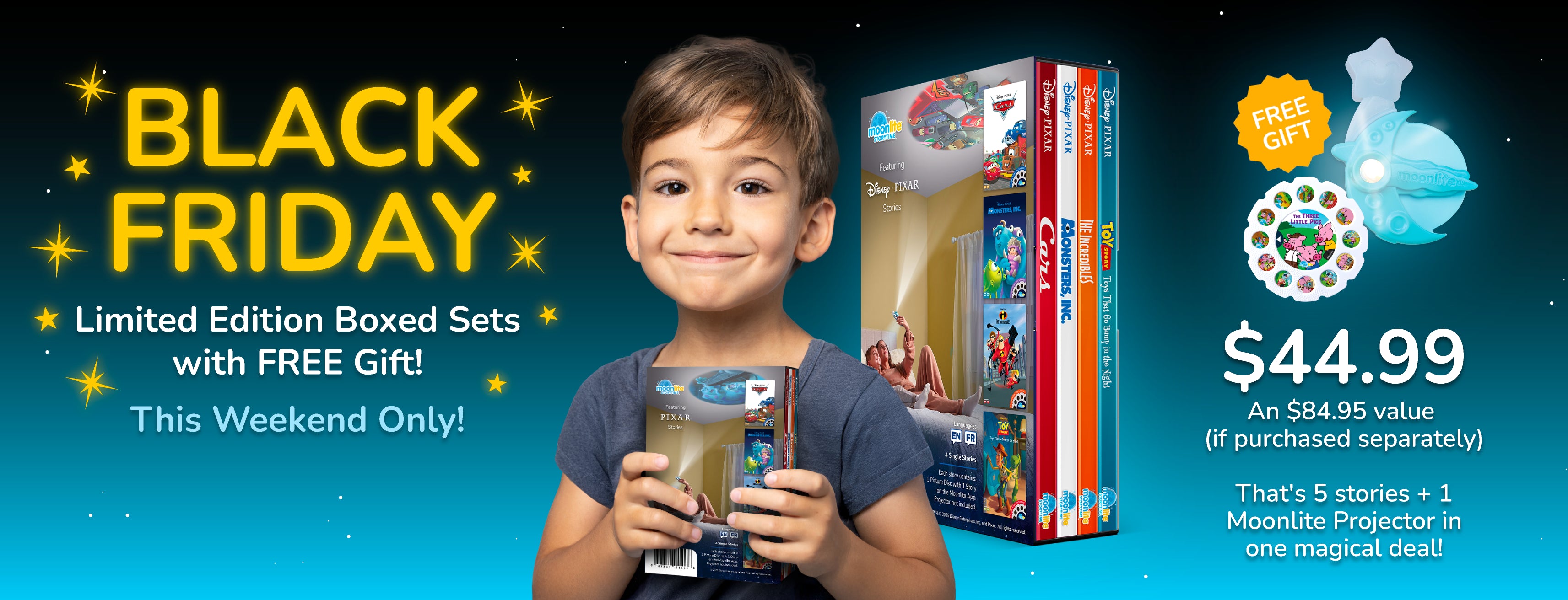 The perfect place to start your Moonlite journey. Each Moonlite Storytime Collection includes a Moonlite Projector and Stories. Each Story contains 1 picture disc with an activation code that downloads the content into the FREE Moonlite App on your smart device.